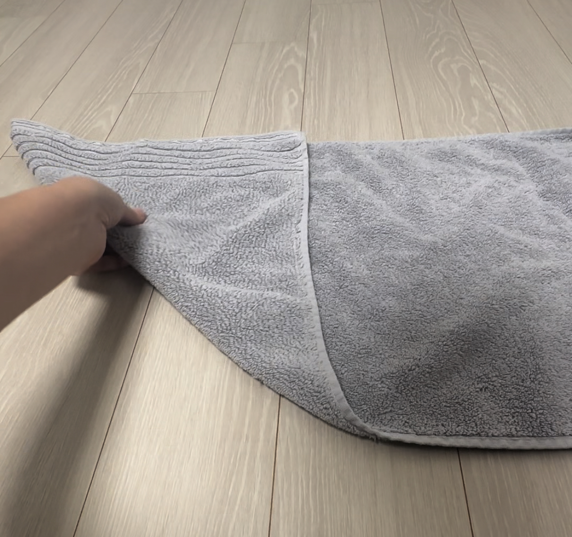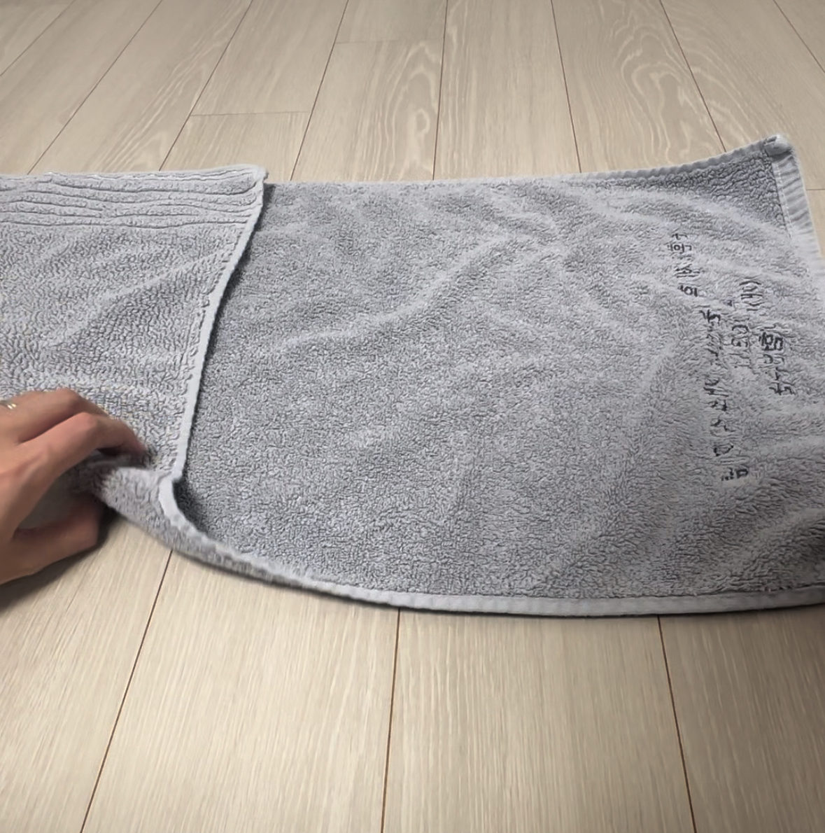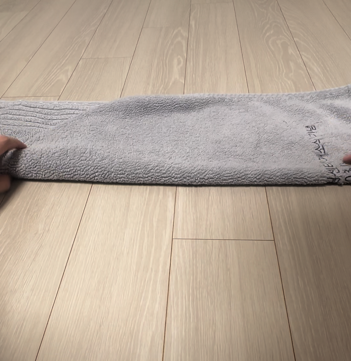 바닥이나 테이블 위에 수건을 평평하게 펼쳐두었어요.